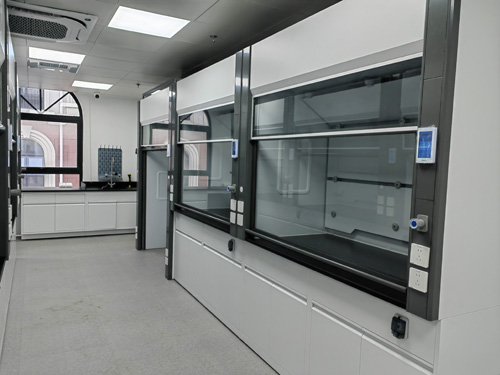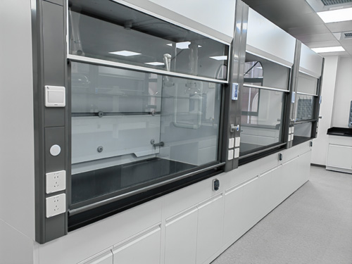 2)照明系統:主要包括正方形能效孔燈,隱秘于頂板上,不與開窗通風柜中實驗操作的氣體立即遇到,易調整,亮度調節是做到實驗操作需要。